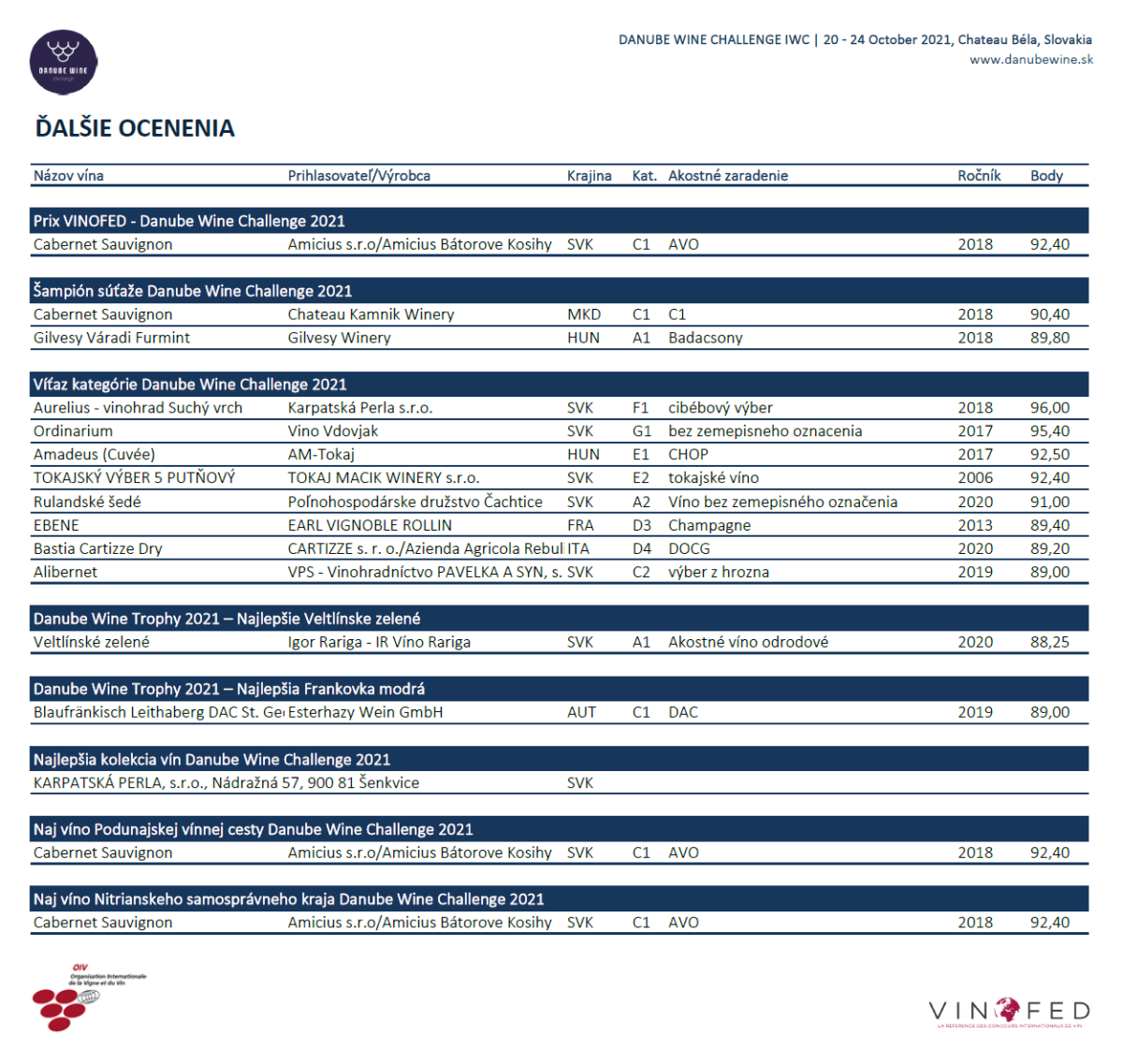 Dovolíme si ešte poznamenať, že nejde len o top podujatie na Slovensku, ale aj v rámci Strednej Európy. Okrem získaného patronátu OIV (Medzinárodnej organizácie pre vinič a víno) je totiž súťaž Danube Wine Challenge aj riadnym členom Svetovej federácie veľkých medzinárodných súťaží vína a destilátov (VINOFED).