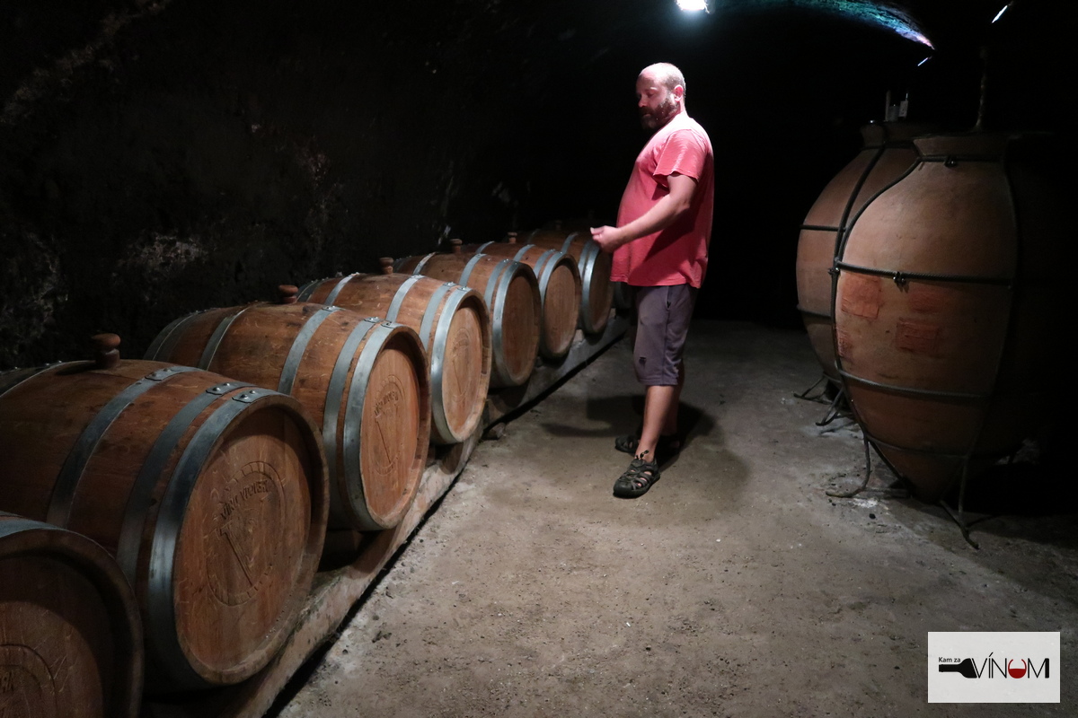 A cestou späť na "ďaleký západ" sme sa zastavili v obci Veľká Tŕňa, kde nás privítal vinár Matúš Vdovjak, ktorý na spracovanie tradičných tokajských odrôd používa aj tzv. kvevri (veľké hlinené nádoby, resp. amfory).