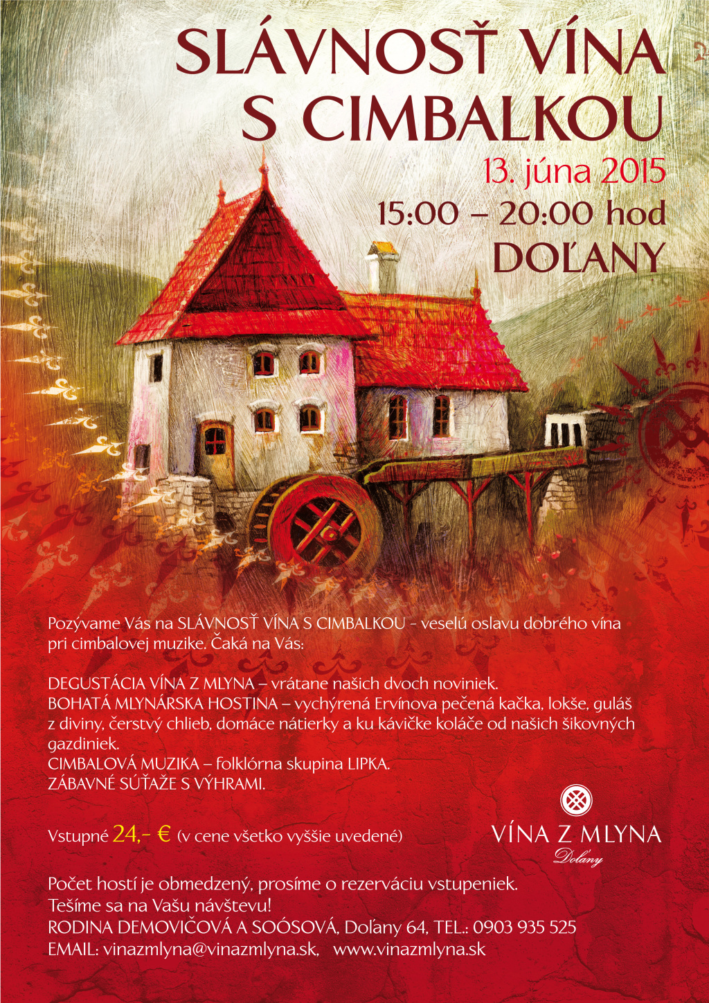 Rezervácia vstupeniek - vopred na adrese vinazmlyna@vinazmlyna.sk.